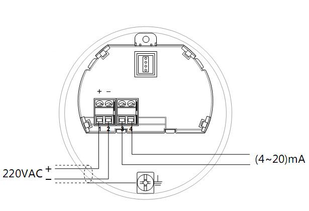 裝置完成后,將液位變送器的外殼蓋擰下,取下顯示模塊后將電纜穿過(guò)纜塞,運(yùn)用屏蔽電纜,依照接線圖接線,在變送器測(cè)儀將電纜屏蔽層接地。接完線后擰緊電纜塞,擰上外殼,接線完成。